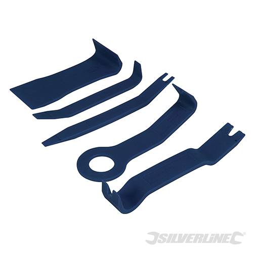 Indicado para la extracción e instalación de molduras, salpicadreos y tapicerías de puertas de vehículos. Fabricados en nylon y fibra de vidrio para no dañar las superficies. Gran anchura para hacer palanca fácilmente. Incluye 5 herramientas diferentes.