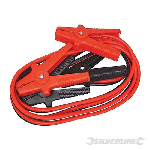 Pinzas con cable de cobre aislado recubierto de PVC para arranque de baterías de coche. Longitud 3,6 m. Capacidad máxima 600 A.