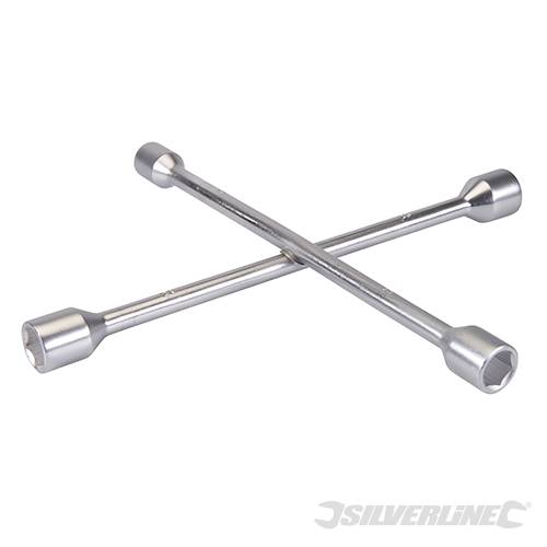 LLave en cruz con cuatro vasos de diferentes tamaños. 17, 19, 21 y 23 mm.