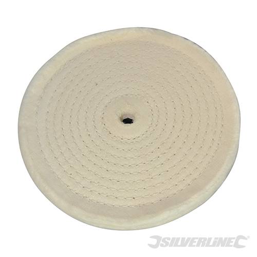 Rueda pulidora fabricada con 40 capas de algodón. Indicada para pulir y abrillantar. Se recomienda utilizar una pasta de pulido por cada rueda para obtener los mejores resultados. Se pueden apilar y acoplar en husillos cónicos para obtener el grosor requerido. Agujero de 16 mm/ 5/8". Compatible con amoladoras/pulidoras de banco de 150 mm.