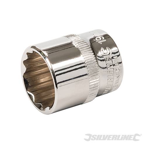 Vaso bihexagonal con 12 cantos para mayor par de torsión. Acero cromo-vanadio endurecido, templado y forjado en frío. Acabado pulido y cromado niquelado resistente a la corrosión. Extremos biselados y cantos finos para mayor sujeción dentro del elemento de fijación. Bandas moleteadas para mayor agarre y agujero de retención con bola.